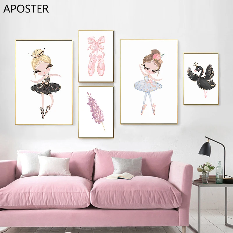 | Nordic Ballet Princess Nursery Poster Unicorn Wall Art Canvas Painting Swan Wall Pictures For Children Room Kid Cuadros Decor |