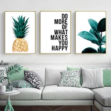 | Scandinavian Pineapple Leaf Wall Art Poster Nordic Motivational Quotes Canvas Botanical Print Painting Nordic Decortion Picture |