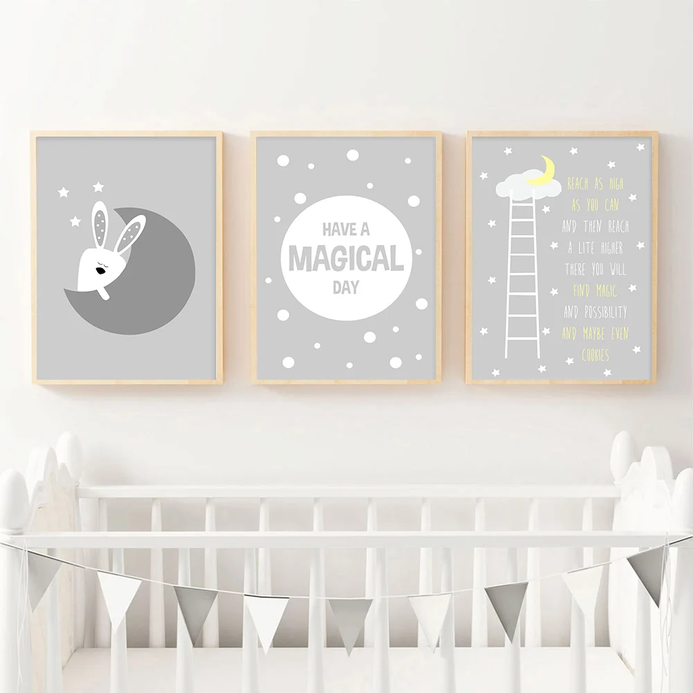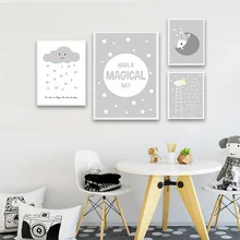| Nursery Quotes Wall Art Canvas Poster Minimalist Print Grey Cartoon Painting Decoration Picture Nordic Kids Boy Bedroom Decor |