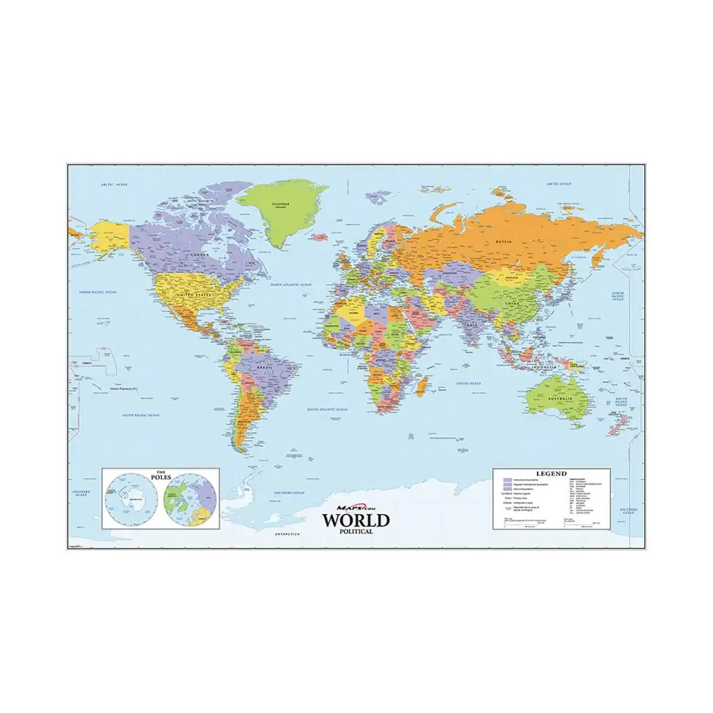 59x88 Inch HD World Political Map Posters and Prints Wall Art Pictures on canvas Paintings for Living Room ,Office ,Home Decor