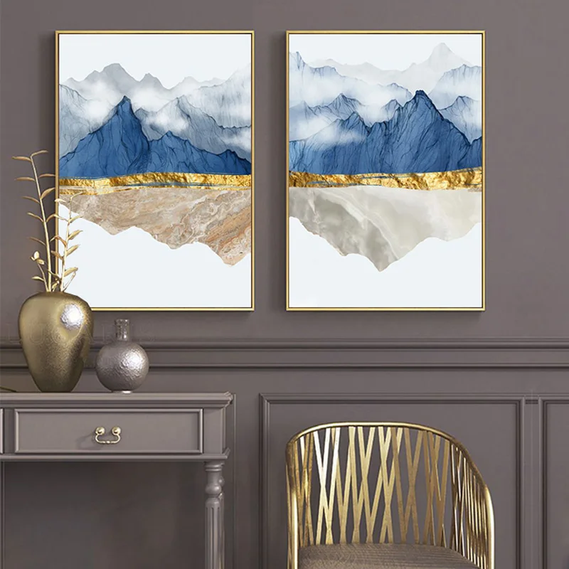 Modern Mountain Reflection Marble Abstract Wall Poster Landscape Canvas Print Painting Contemporary Art Home Decoration Picture