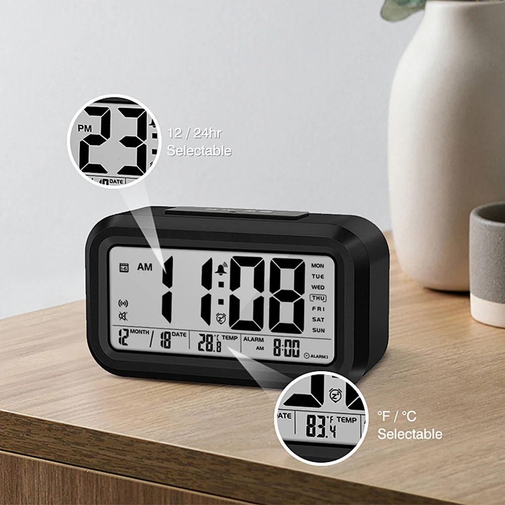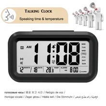 | Talking Clock Speaking Time and Temperature Digital Snooze Alarm Clock with Thermometer Calendar Backlight |