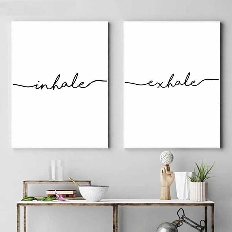 | Inhale Exhale Black White Poster Minimalist Canvas Wall Art Canvas Print Decorative Picture Painting Nordic Room Decoration |